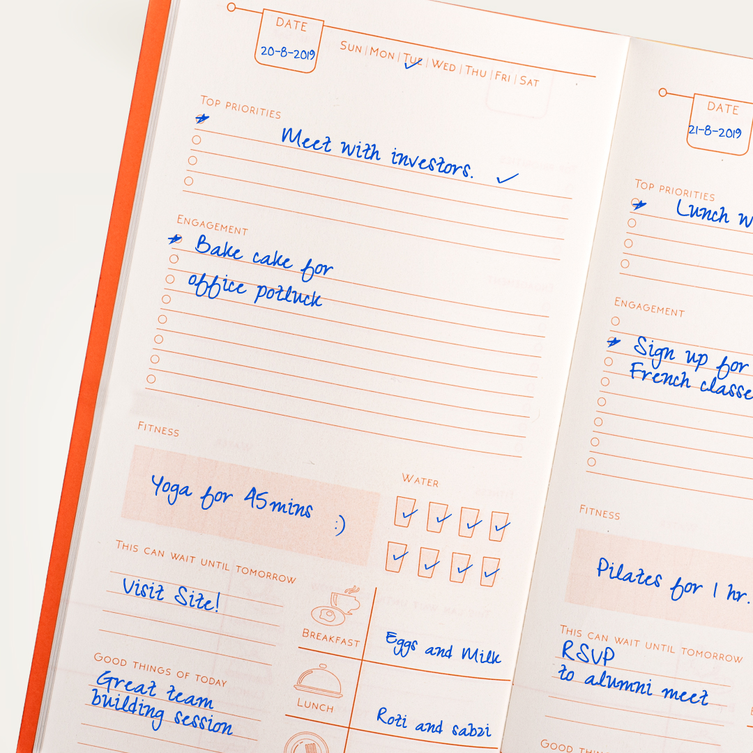 There are several apps that you could download for the same. But they are impersonal. You will probably use it for a day or two or a week or even a month, and then you will just ignore it. Isn’t it? But what really works is a handwritten list of things of to-do and goals to achieve.