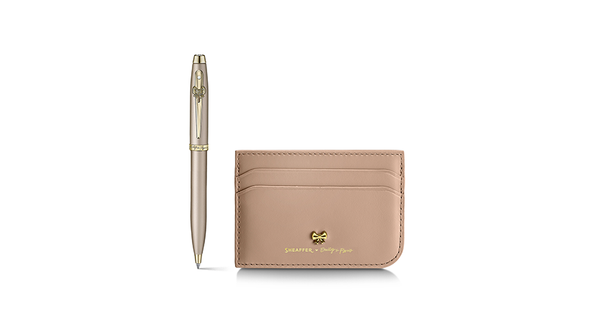 Sheaffer 100 Emily in Paris 9377 Champagne Gold Ballpoint Pen with Champagne Gold Trim and Full-Grain Credit Card Holder Gift Set