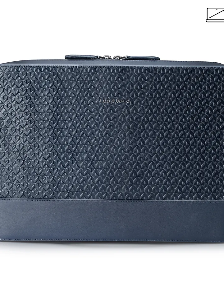Encased in enigmatic charm, the Enigma Laptop Sleeve offers both protection and style for your 14” laptop. Inspired by mid-century aesthetics, the debossed geometric pattern extends across the palm grip with rivet details, creating a sense of intrigue. A quick-access back pocket with a magnetic closure adds practicality while maintaining sleek sophistication.
