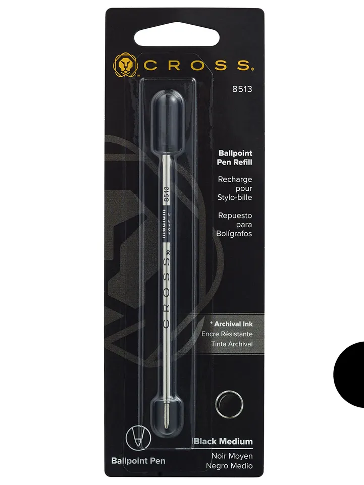 This refill is designed for standard Cross ballpoint pens. It is suitable for general-purpose writing, and is highly reliable and convenient to use on all paper. This refill is compatible with the following collections: Classic Century, Century II, Townsend, ATX, Peerless 125, Botanica, Bailey, Calais, Beverly and Tech2.