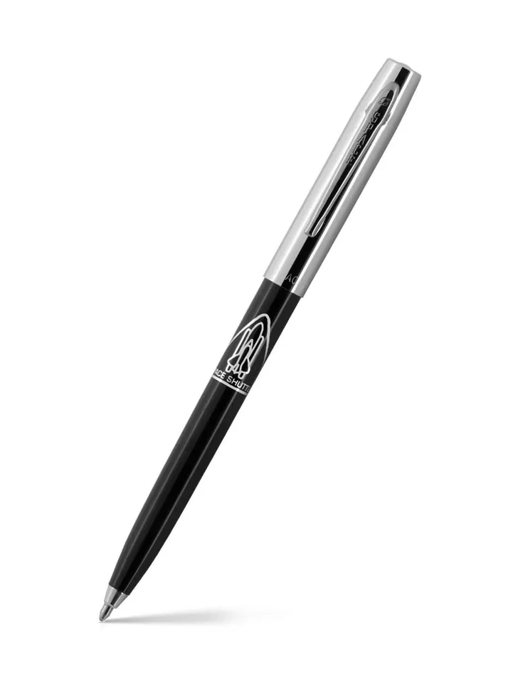 The Cap-O-Matic chrome top plastic barrel space pen measures 5.25" and contains #PR4 black ink. The Fisher Space Pen Chrome Cap-O-Matic lets you Write anywhere, on anything, in any conditions. The Fisher Space Pen is perfect for the outdoors and changeable weather conditions.