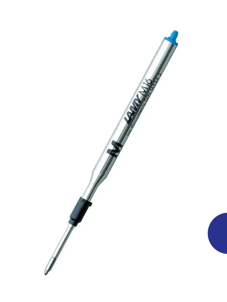 The LAMY M 16 giant ballpoint refill is as well designed as LAMY writing instruments. Available in black in the line sizes B & F, green in M only. Writing capacity varies according line size from approx. 4,500 to 8,000 m. SUITS: All LAMY ballpoint pens except LAMY Scribble and LAMY Pico ballpoint pens.