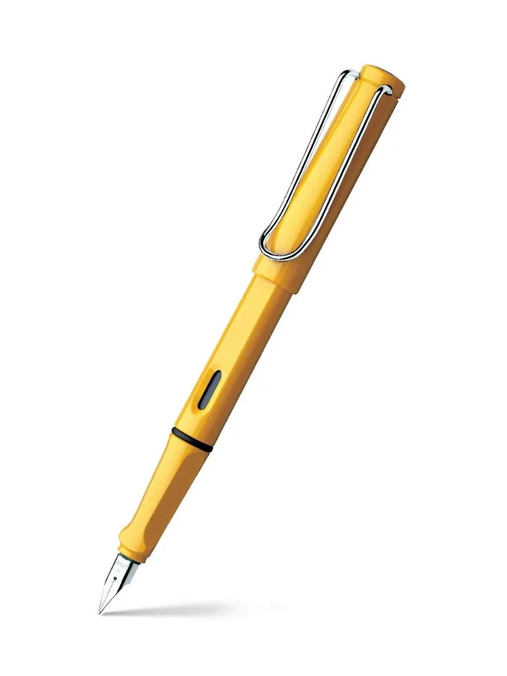This is the Lamy Safari - the best-selling collection from Lamy, readily identifiable because of its iconic clip. Classic safari design fountain pen in gloss yellow. Tough ABS plastic, triangular grip area, ink level window and strong chrome-plated brass pocket clip. Fountain pen comes fitted with the Z28 converter for bottled ink. A cartridge can also be used. This pen features a steel nib. Also Available with Broad, Extra Fine and Fine Nib