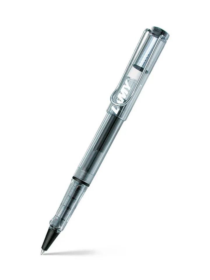 The Lamy Vista rollerball pen is made with crystal-clear ABS barrel and cap, with triangular grip area. Strong metal wire pocket clip. Liquid ink roller refill. Fitted with refill LAMY M 63 M black