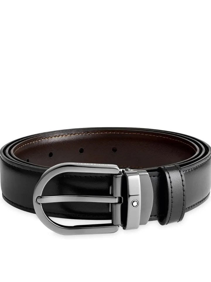 Only the highest quality material and exceptionally skilled artisans are trusted with the creation of Montblancs impeccable leather pieces. This reversible, self-adjustable Montblanc belt features a leather strap (3 x 120 cm) in black and brown. Conceived for a classic look with a twist, the belt is finished with a horseshoe buckle in a shiny ruthenium finish