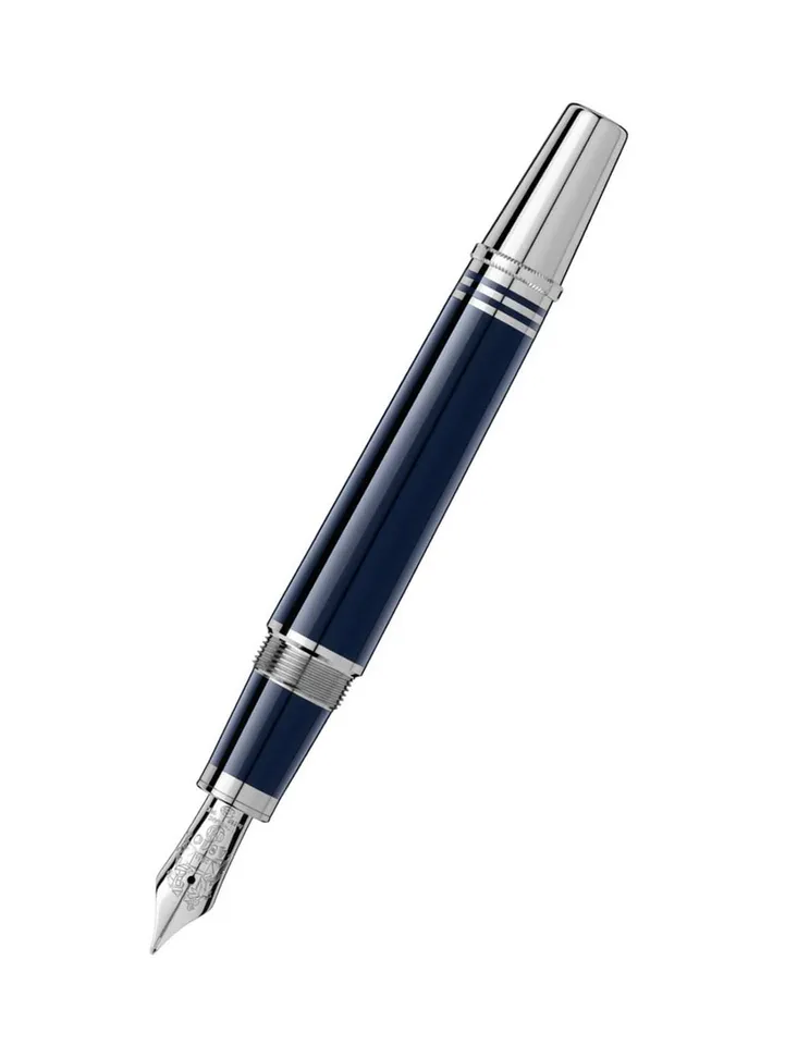 Commemorating one of the most revered figures of modern history, the Special Edition John F. Kennedy makes symbolic references to the life of J.F. Kennedy via subtle design details. The blue, precious resin refers to both Kennedys time in the U.S. Navy and his famous Ivy League style. His initials JFK are engraved on the platinum-coated clip, and the three platinum-coated cap rings represent Kennedys three brothers. In a tribute to the national hopes and dreams embodied by Kennedys pet project, the Apollo space program, the handcrafted 585 gold nib is engraved with the lunar module that landed on the moon in 1969. The Special Edition is crowned by the Montblanc emblem in precious resin. The nib is made from solid 14-carat gold.