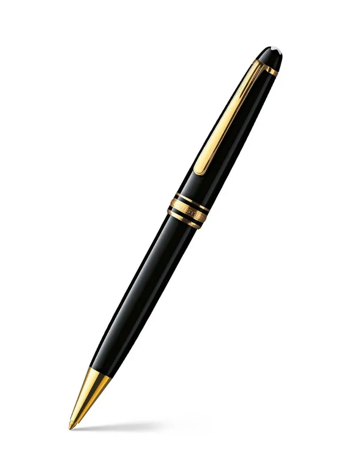 The Meisterstück Classique in deep black, precious resin with gold-coated details and surmounted by the white star emblem is a distinctive design icon.