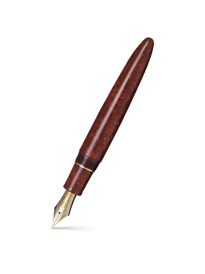 The Miyabi-Nuri collection is Sailors Bespoke 2nd edition release in the Iro-Miyabi series, presenting fountain pens adorned with delicate urushi lacquer patterns applied using silk cloth. These pens showcase soft, elegant designs with refined colors and a subtle shimmer from pure gold and silver powders. Kon-Ruri features a noble lapis lazuli blue, Ran-Peki boasts a mysterious jasper color, Fukaki-Ale symbolizes deep red nobility, and Bun-Jin-Cha is a stylish brown inspired by literati culture. Crafted on an ebonite base in King of Pen size, each pen includes a smooth 21K bi-color gold nib for an unparalleled writing experience.