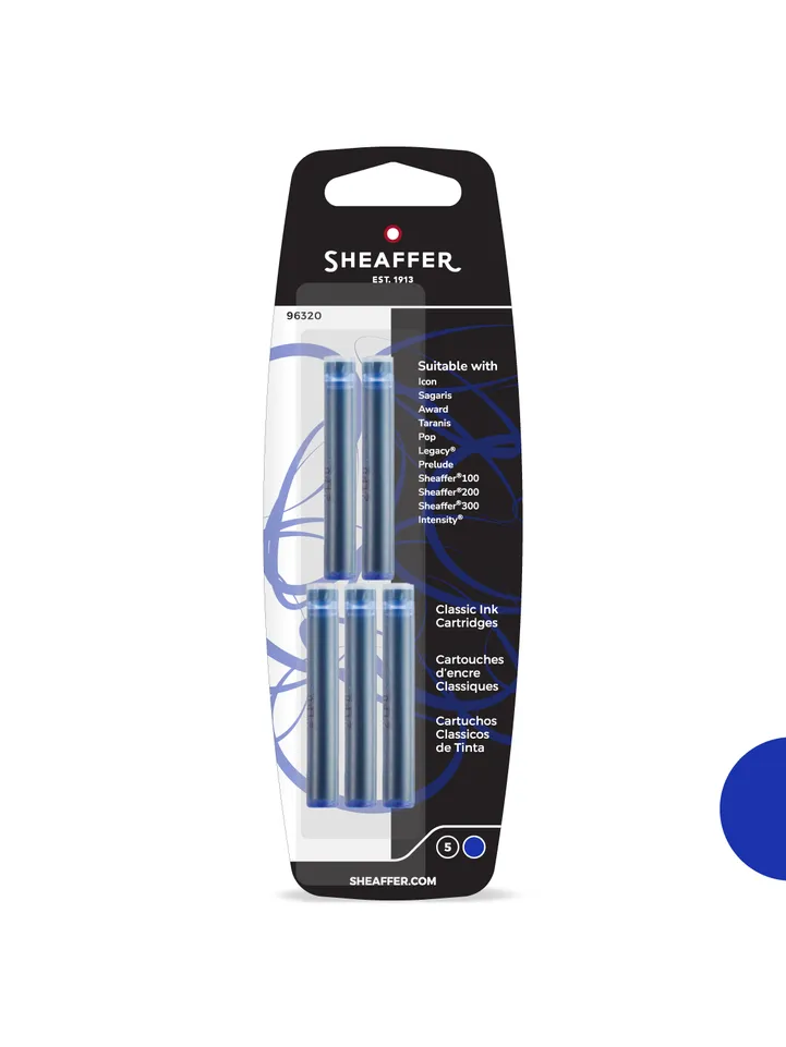 Sheaffer's high-quality cartridges are perfect for use with Sheaffer fountain pens and are available in a range of outstanding colours. Sheaffer inks are available in a wide selection of unique and vibrant colours. The distinctive ink colours will make your writing stand out from the crowd, showcasing your style and personality. This cartridge fits most current Sheaffer fountain pens including calligraphy pens. It is not suitable for the Sheaffer VFM.
