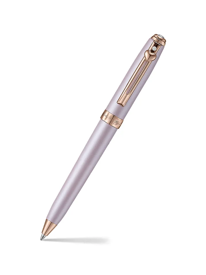 Designed as a compact, travel-friendly version of Sheaffer's iconic Prelude, this miniature ballpoint pen is the perfect blend of Parisian emblem and everyday functionality. Styled in a soft pastel pink lacquer with elegant rose gold PVD trims, it's a nod to the playful sophistication of Emily in Paris. A genuine Swarovski crystal graces the top, adding just the right amount of sparkle. Ideal for smaller hands and on-the-go moments, it fits easily into clutches, travel wallets, and journals. With the co-branded Emily in Paris band, it's as collectible as it is functional. Whether you're jotting down café musings or signing something fabulous, this pen is your perfect Parisian companion-petite, polished, and très chic.