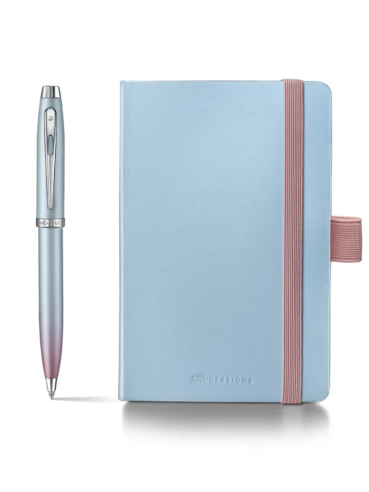 Where timeless design meets the rhythm of the present, the Sheaffer 100 Expressions set is crafted for those who lead with intention and express with clarity. The ballpoint pen, finished in a striking Blue and Pink Pearlised Gradient with chrome-plated trims, offers Sheaffer's trusted writing performance with a vibrant, contemporary edge. Paired with a thoughtfully designed small notebook featuring smooth, ink-friendly pages, this set is made for capturing thoughts, signing moments, and shaping ideas as they unfold. Elegant, precise, and expressive, this is Sheaffer for those who define their journey in their own words.