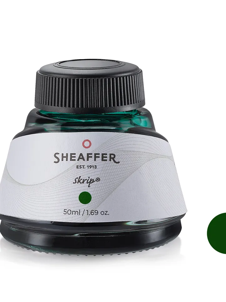 Sheaffer Skrip Fountain Pen Ink is perfect for enhancing your writing with any fountain pen. This 50 ml bottle offers green ink. This ink bottle is specifically recommended for Sheaffer fountain pens but suitable for all makes, this high-quality ink is formulated to provide a long write-out and consistent smooth performance, making it an ideal choice for both everyday use and special projects.