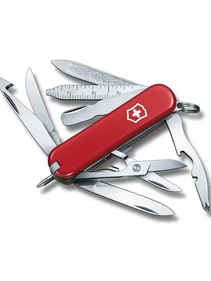 It's a little knife with big ambitions. With no less than 18 functions packed into a slim profile that easily slips into your pocket, the Mini Champ pocket knife is the champion among small knives. Keep it with you all day long and you won't even notice it's there. That is until duty calls, and then the Mini Champ is at your service. Pull it out and win the day.
